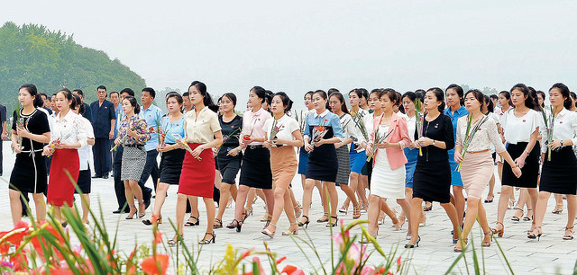 「9・9節」に献花する北朝鮮の女性たちの装い