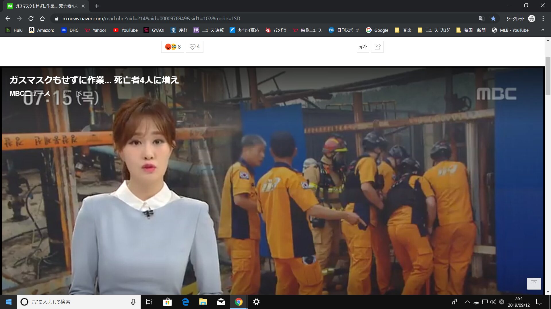 ガスマスクもせずに作業... 死亡者4人に増え 2019.09.12