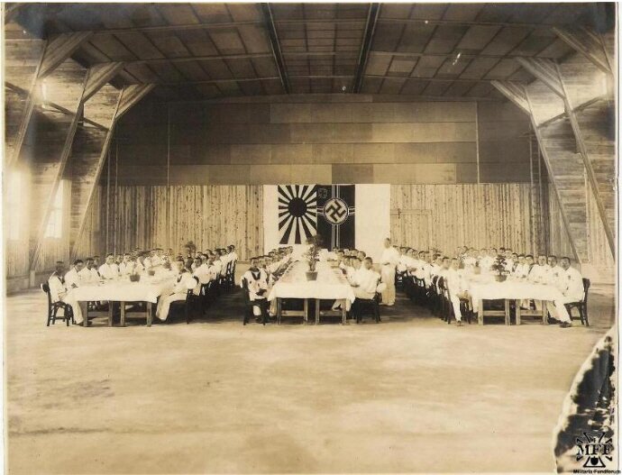 旭日旗とハーケンクロイツが並べて掲げられていたとしても、大日本帝国がナチスのユダヤ人虐殺に加担したことはない。むしろ多数のユダヤ人をナチスの追手から救った話は少なくない。それでドイツから文句を言われたこともある。