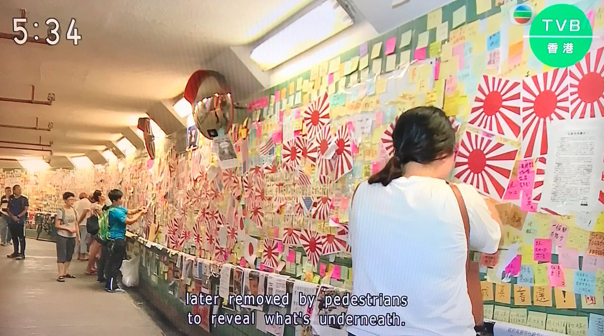 反送中デモに賛同する人間が、香港の大埔の地下道の壁に応援のメッセージを沢山貼ったんだが、