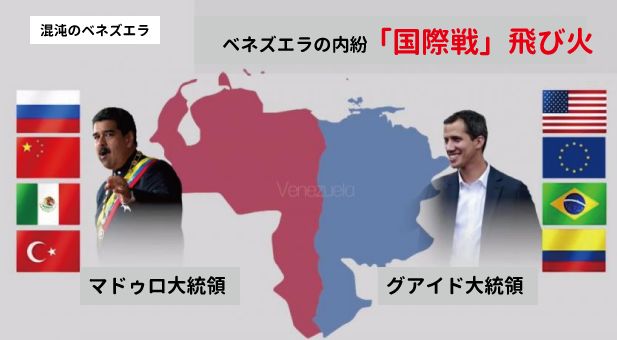 反政府派のグアイド暫定大統領・・・反政府派への弾圧に対抗して成立、アメリカ、EU、日本など西側諸国が支持