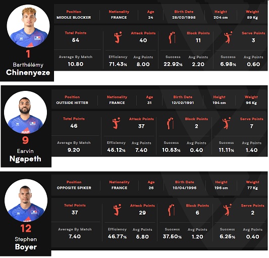フランスチームの先発メンバーで、フランス系フランス人は、セッターだけかもしれない。