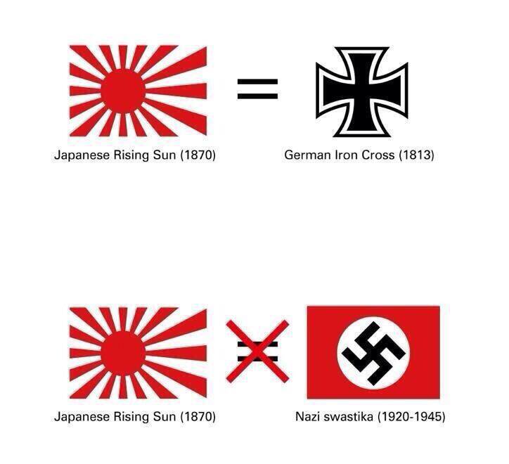 旭日旗=ナチスのカギ十字というウソを知らせるために、世界中の旭日旗デザインを使ったものに噛みつき始めた。