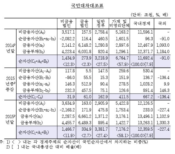 (2016.06.14)+2015년+국민대차대조표(잠정)+작성+결과.pdf <==이것을 클릭하면 2015년 한국 가계부채