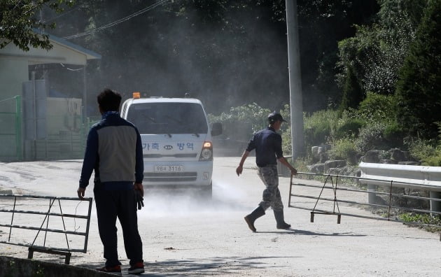 鉄原葛末邑で野生のイノシシの死体が発見された地点から10キロ以内では46戸の農家(鉄原郡31戸、抱川15戸)が豚10万5000頭を、西面でイノシシが捕獲された地点から10キロ以内では12戸の農家が豚4万1000頭を飼育している。