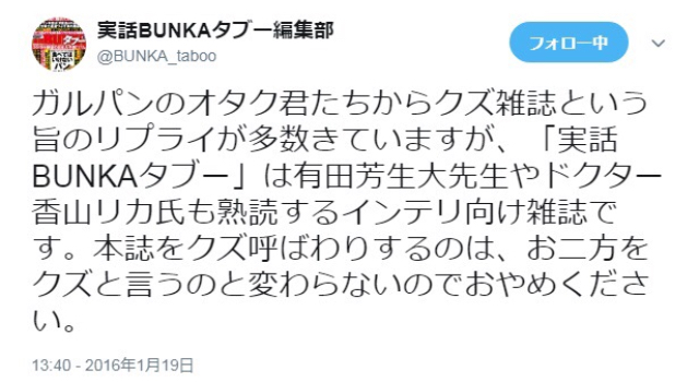実話BUNKAタブー編集部@BUNKA_taboo