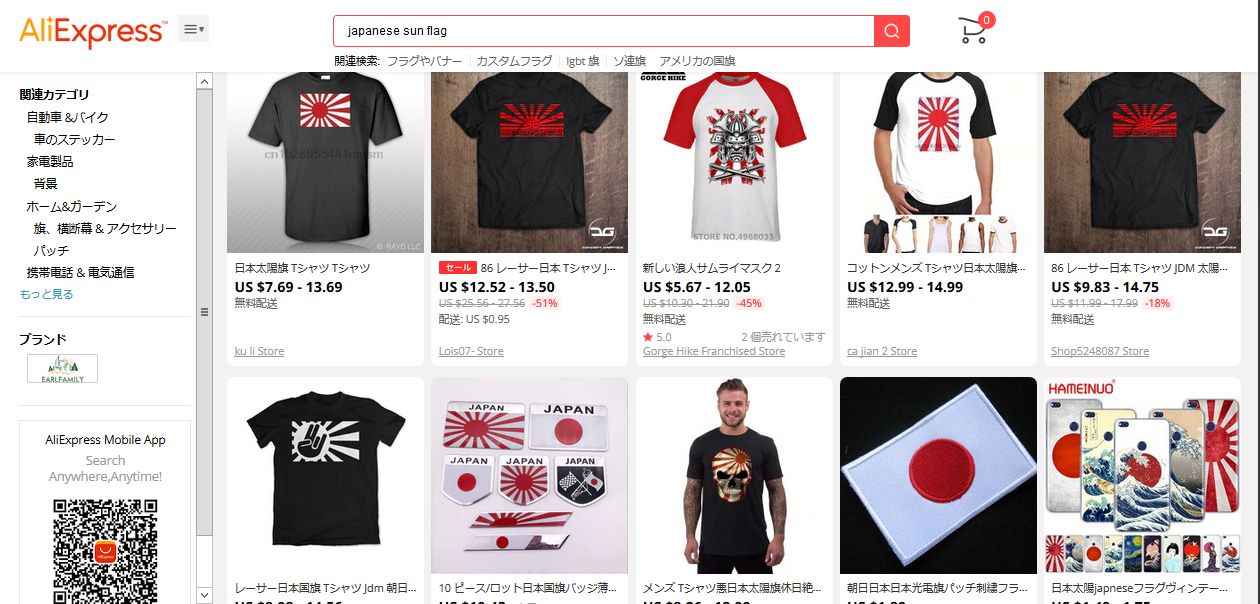 中国のAliexpressで旭日旗のシャツ売ってるよ!