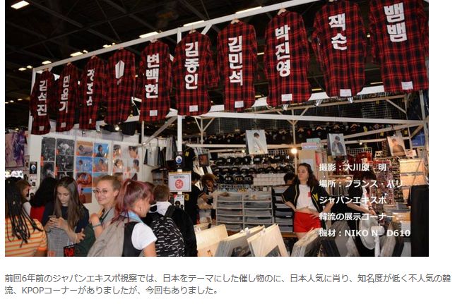 何故、ジャパンエキスポに出店するのか。それは、コリアエキスポではとてもでないですが、人数を動員できない点、フランスでは日本の文化が非常に人気があり、日本と隣の国で兄弟のような感じで見てもらい、日本の人気に肖り、相乗効果を計るのが目的です。>>1