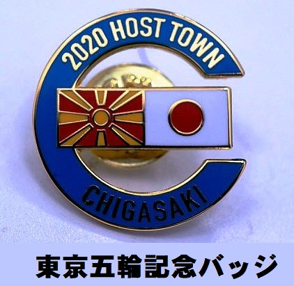【旭日デザインの国旗です】北マケドニア共和国の五輪ホストタウン茅ヶ崎市が記念バッジを作成