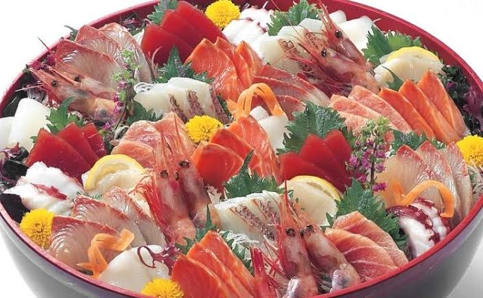 刺身は、都会なら海外でも冷凍マグロやサーモンが食べられるから、帰ってきてから最初に食べる刺身はアジのたたき。飢え死にが常態化した国は、とにかく腹を膨らます量に拘る文化になる。当然、盛り付けの美しさより、沢山盛り付ける事が重要視される。
