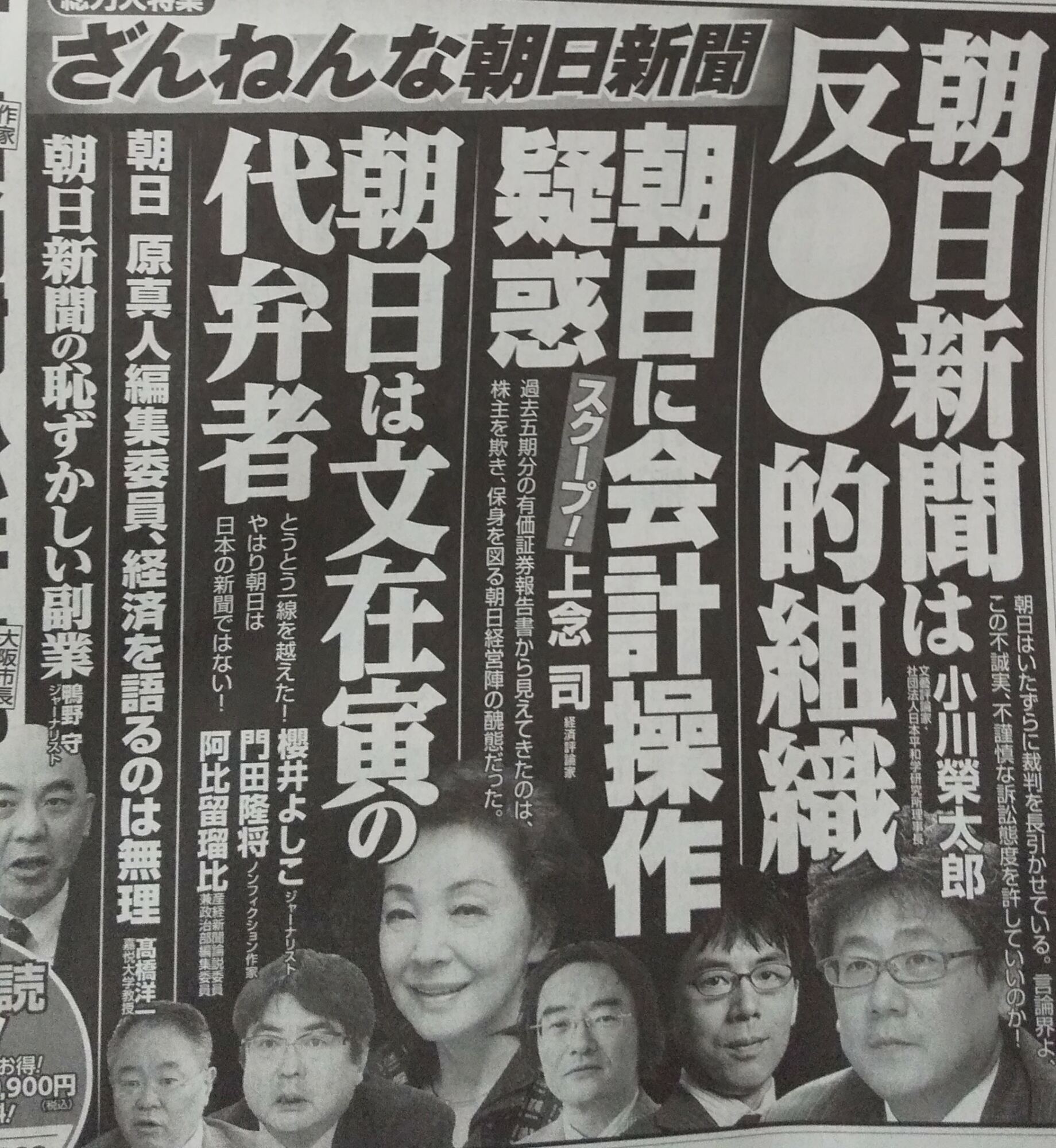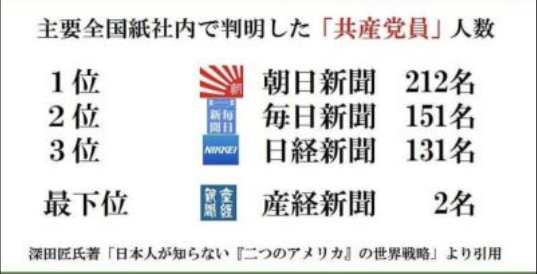 朝日新聞とは、中国共産党と創価学会の影響を強く受け続け、社員に在日枠が用意されているため在日朝鮮人が記事に影響を及ぼし、中国共産党の機関紙(国営紙)である人民日報とは正式な提携関係にあり、日中韓3国だけの意見を引用して反日をあたかも国際的意見のように騙りつつ、裏では『朝鮮人の資金源である“武富士”』とつるむ露骨な売国新聞である。日本国民が朝日に疲れを感じ呆れ果てている