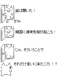いっつも論点ずらす意味ないことばっか。韓国が持ってる4000億ドルの米ドルの貯蓄が有るから大丈夫ニダ!