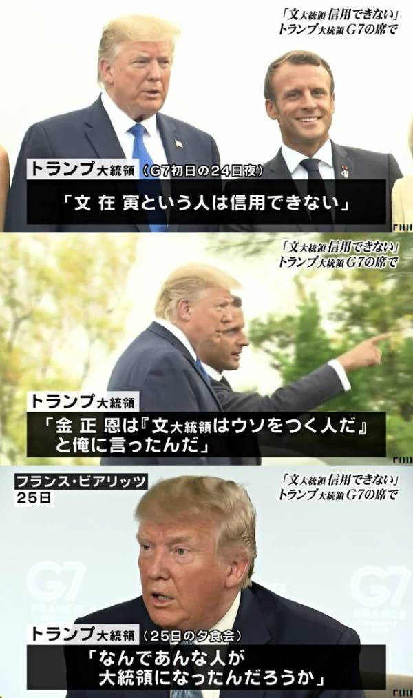 G7のときに、トランプ大統領は「文在寅という人は信用できない」