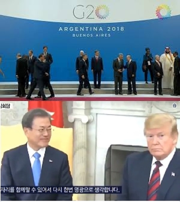 首脳会談に先立ち、文在寅大統領とドナルド・トランプ大統領の冒頭発言は通訳を介して、10分5秒ほど行われた。両首脳のすべての発言が終わった後、4分間、記者たちと17の問答を交わす間、トランプ大統領一人が回答を独占する場面が演出された。文大統領が回答する機会は一度もなかった。