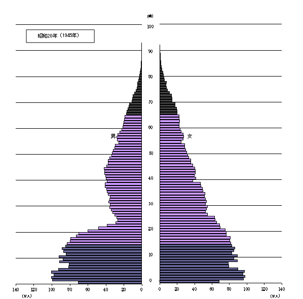 まず「日本人が」徴兵され、戦場で多く死んでいる。(図参照:1945年の人口分布図)