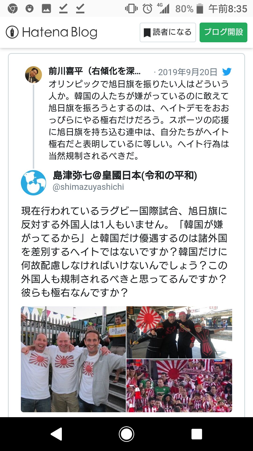 「スポーツの応援に旭日旗を持ち込む連中=極右ヘイト」という発言 → これが一番のヘイト発言でしょうが?!