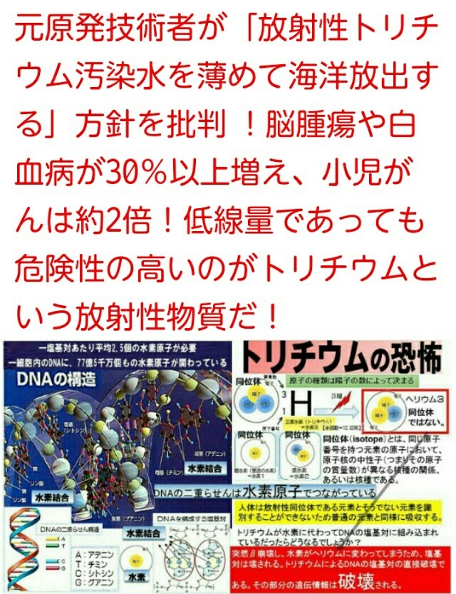 福島の場合は、純粋にトリチウムだけと言い切れないのが問題なんだよ。