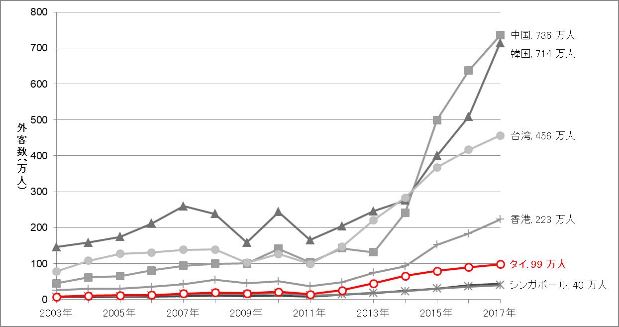 2011年。原発事故後から毎年韓国人観光客が増加してます。