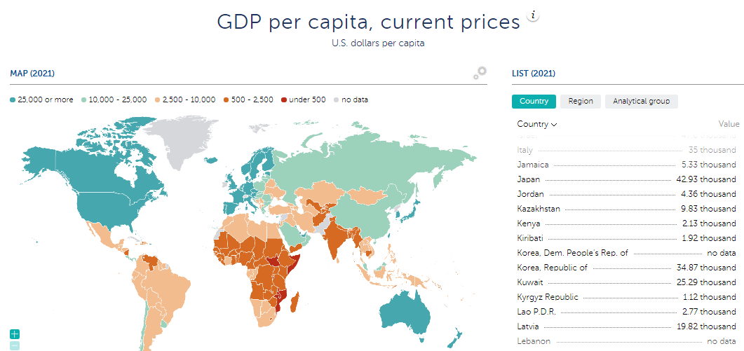 IMF 1人当たりのGDP 2021年