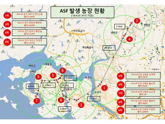 韓国京畿道坡州市の養豚農場で、家畜伝染病「アフリカ豚 コレラ(ASF)が発生