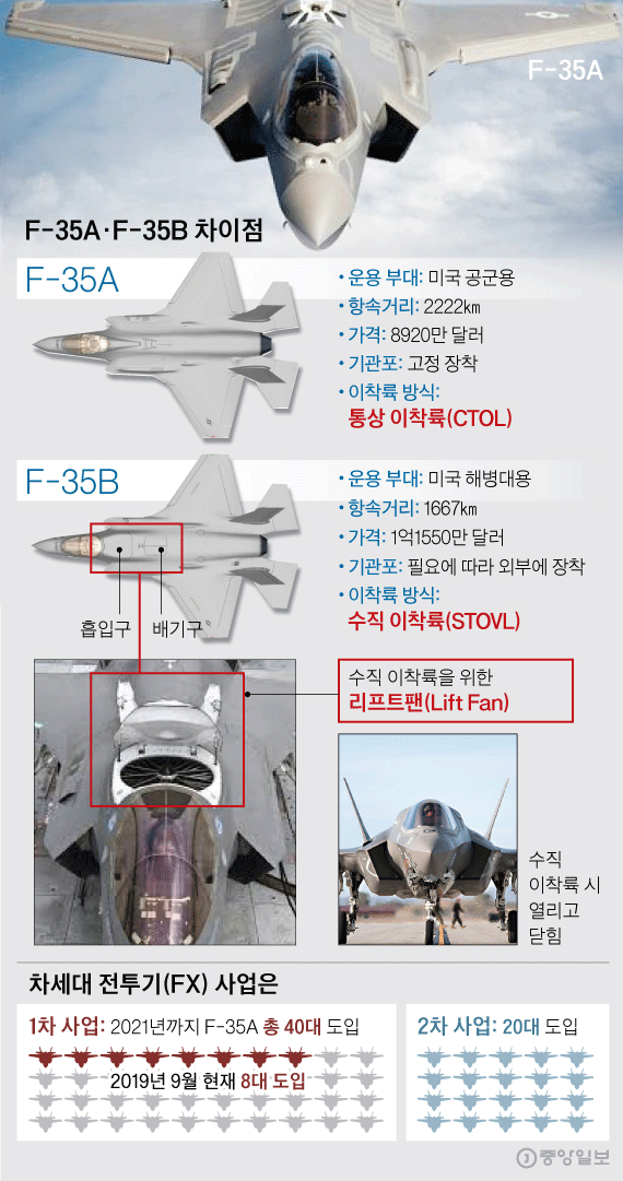 손을 들어준 것이다. F-35B는 활주로에서 뜨고 내리는 F-35A와 달리 수직이착륙 기능을 갖춰