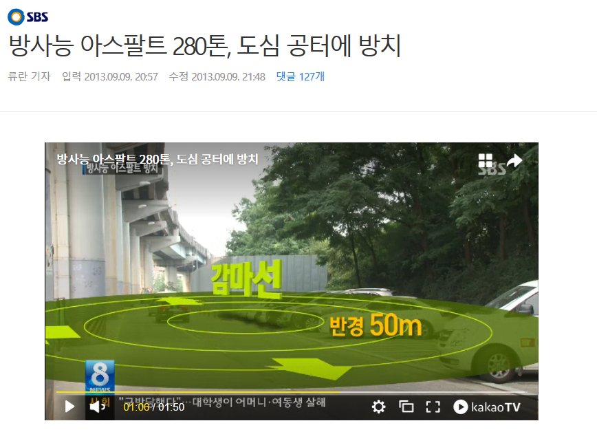 2011년∼2013년9월의 약2년간 방사능 아스팔트를 서울시 노원구에 방치