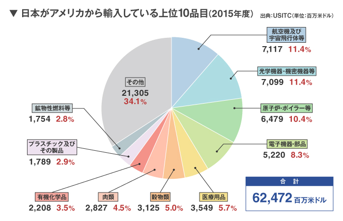 日本がアメリカに光学機器・精密機器、原子炉、電子機器などの製品を輸出しているように、