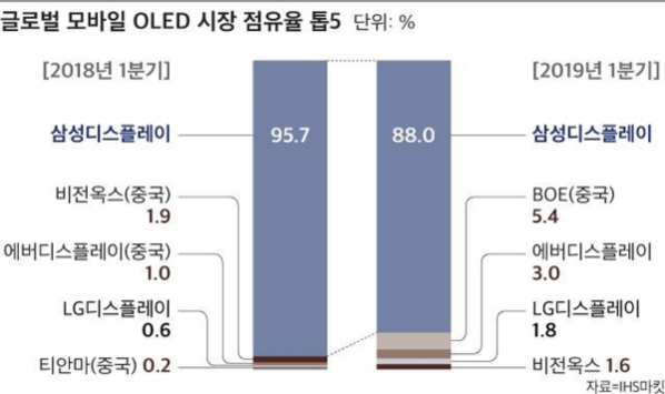 중국 최대 디스플레이 업체 BOE가 지난 7월 가동에 들어간 두 번째 모바일 OLED(유기발광다이오드) 공장인 몐양 생산라인 ‘B11’에 들어가는 장비 10대 중 4대는 한국산인 것으로 나타났다.