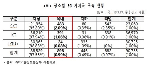 先月19日時点で竣工申告された室内基地局は、全体5G基地局の1%水準である898局に過ぎなかった。