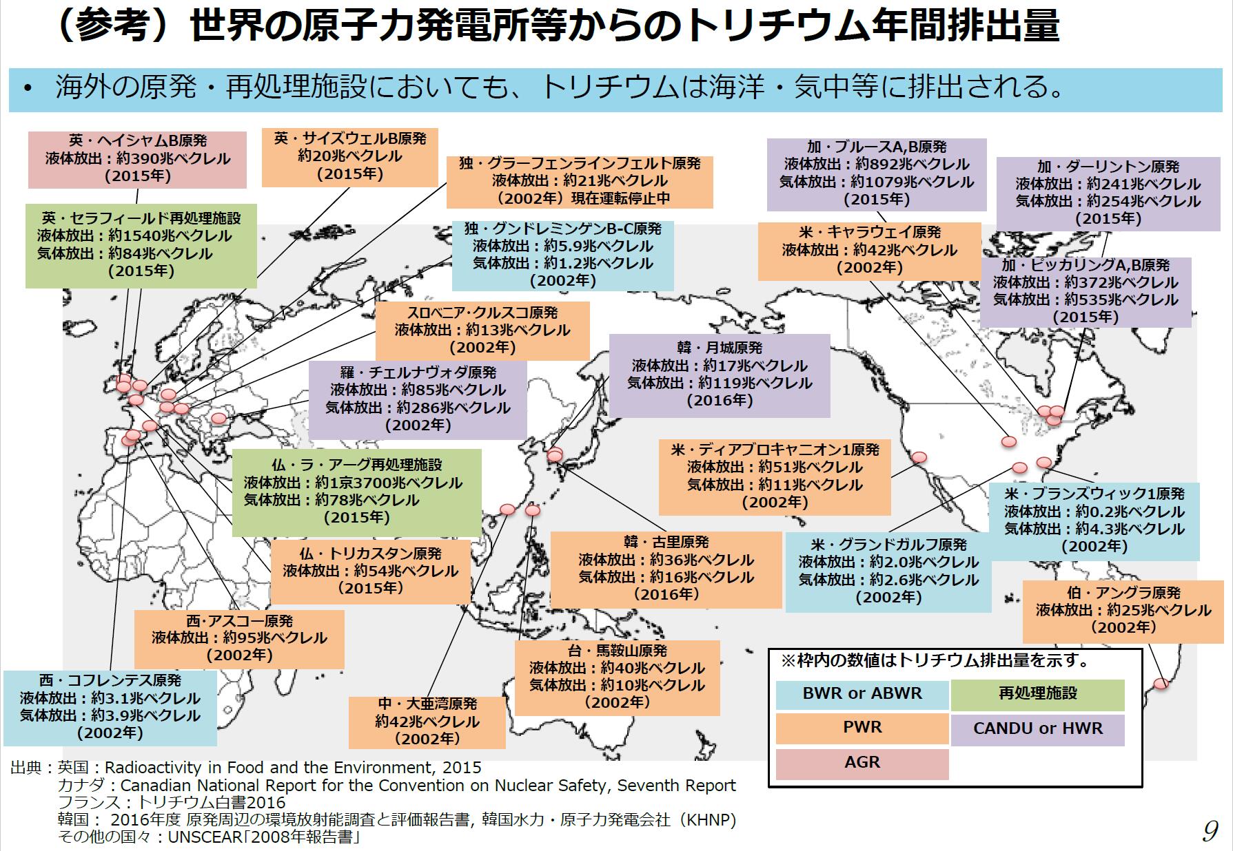 <世界の原子力発電所等発からのトリチウム年間排出量>