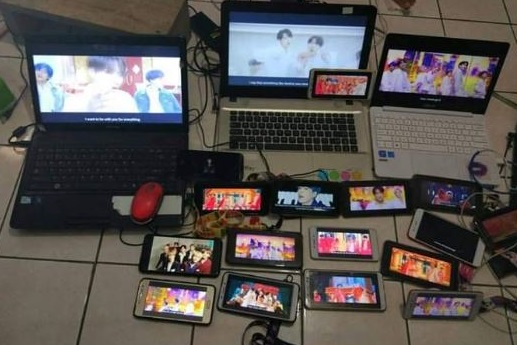 画像は、新曲連続再生専用端末。1日で1万回以上再生できるセット。>>175 こっちの方は「一人で555万回頑張った」と書いてあるけど、画像を見る限り、再生請負業者の事務所の写真が流出しただけだろう。しかも、随分前の写真だし。再生時間最適化プログラムを仕込んであるから、台数の割りに効率がいいってだけだ。