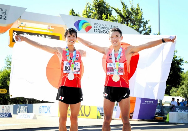 アメリカ・オレゴン州・ユージーンで行われている世界陸上2022 男子競歩20kmで、山西選手が連覇達成。