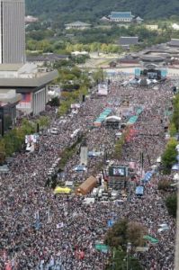 相変わらず韓国国民が踊らされてる~⤴🎵しかし朝鮮の報道機関と云うのはホントにショボい、これだけのデモでありながら空撮が一枚も無い