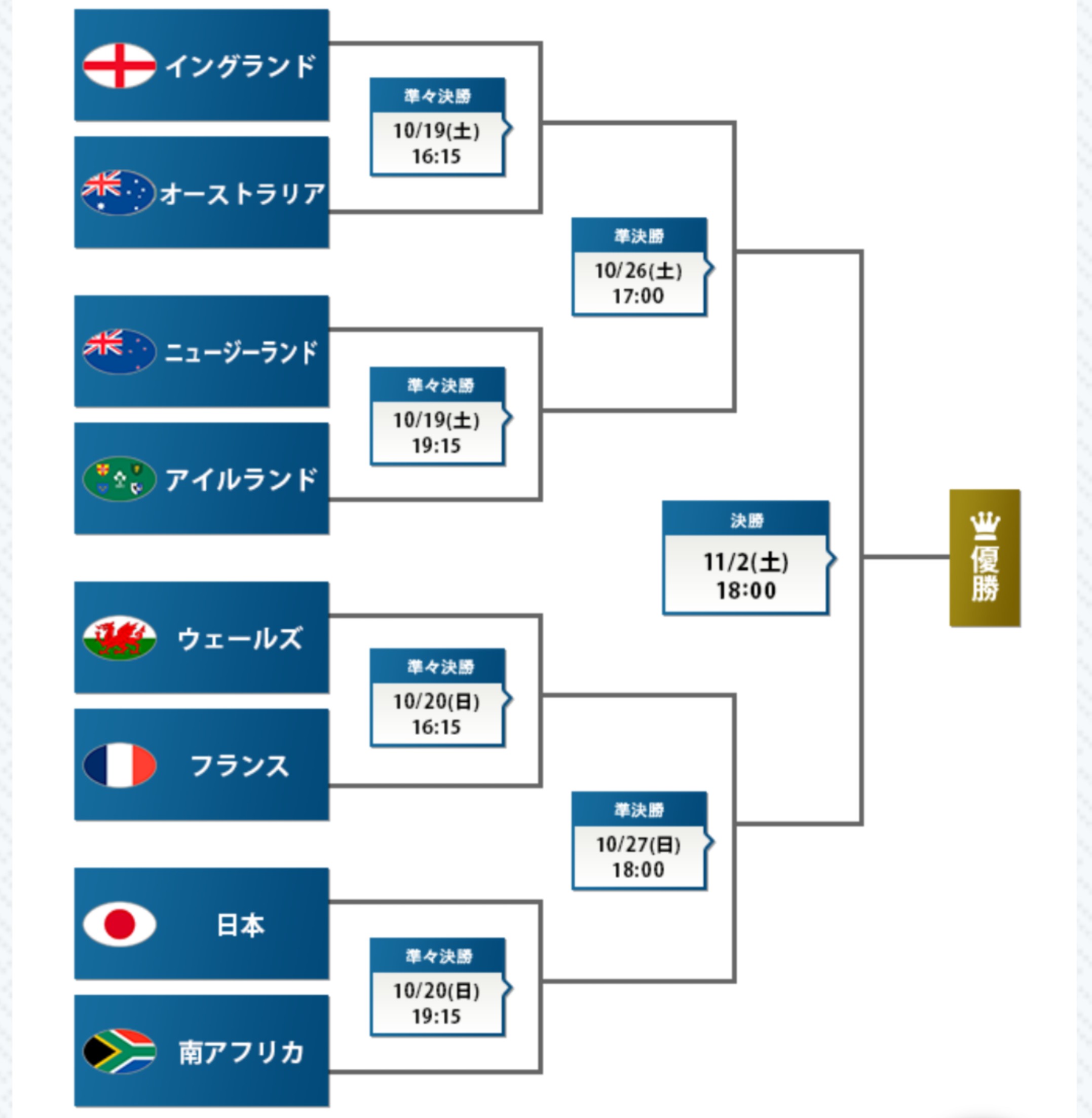 ラグビーもベスト8が決まりそのうちイングランドVSアイルランドと