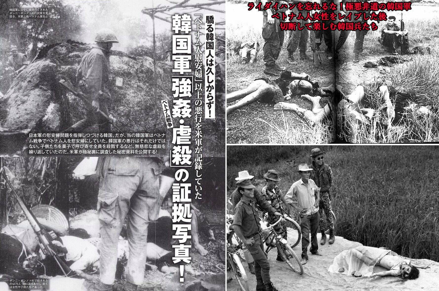 収集付かなくなるからねえベトナム戦争に纏わる韓国軍の蛮行は皆の知る通りだけど、アメリカが国家として敗戦を認めない理由の一要因でもあると思う。戦後賠償はベトナムが求めていない。裁判が開かれず結論が出ていない以上、個人賠償の権利は当然解消できずに存在する。イギリスさんの韓国軍の蛮行を証明行為は、非常に合理的で良い仕事だと思う。