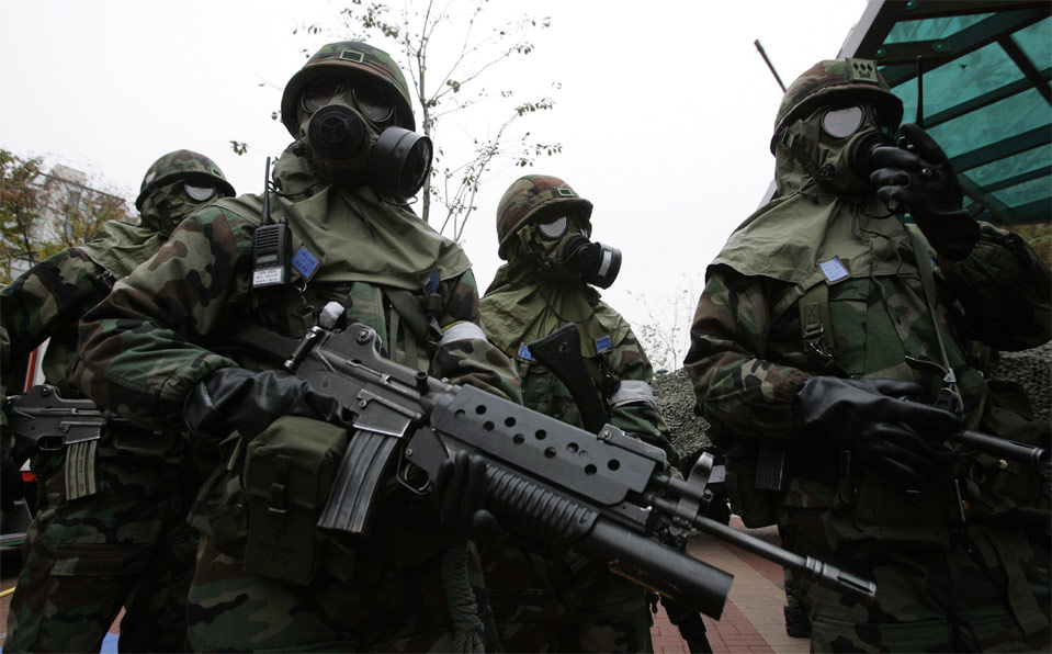 2年の徴兵制度の間に化学防護服を着る訓練までするとは驚きです。