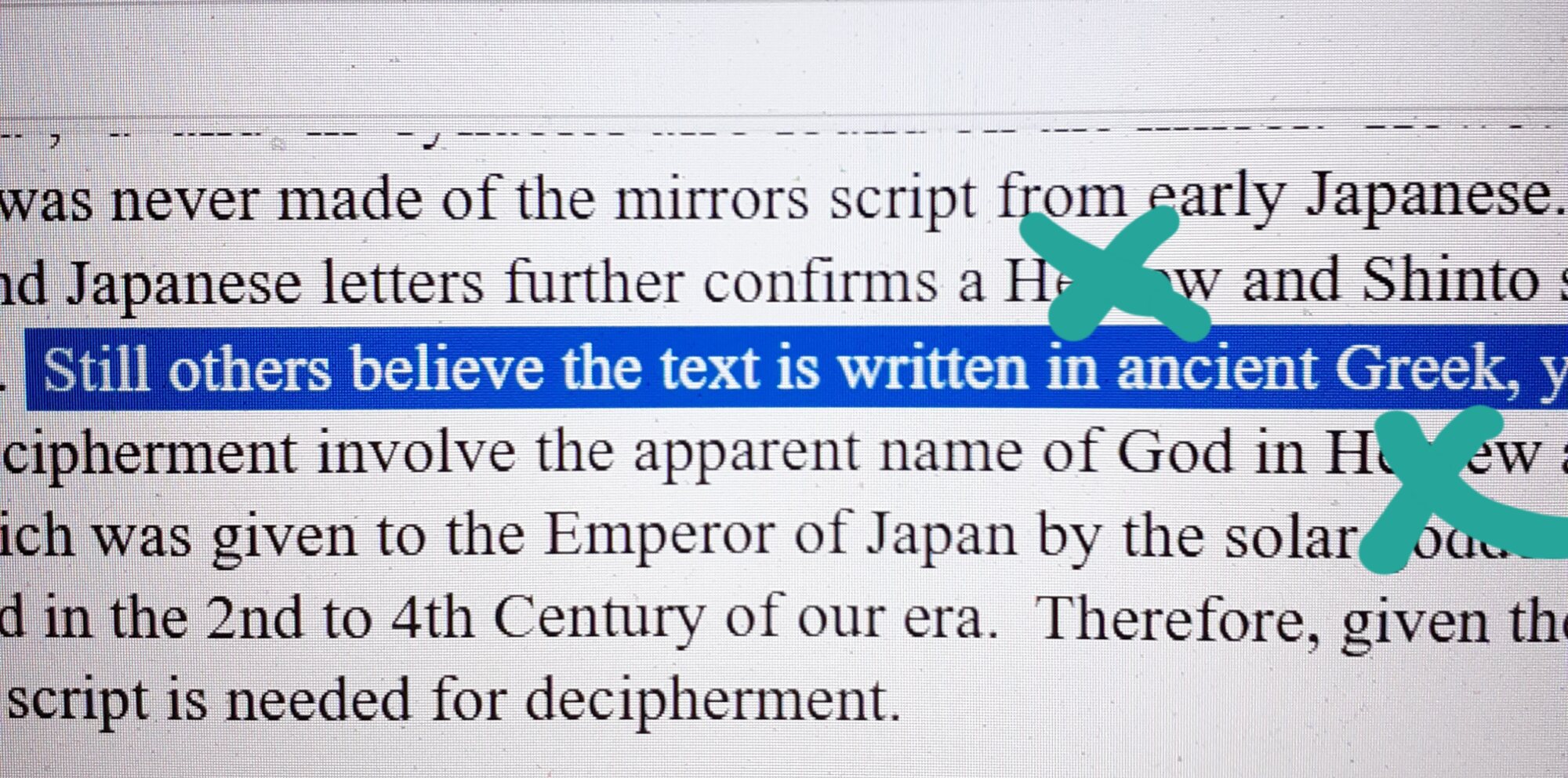 そもそも、八咫の鏡にその文字が本当に書かれていたと、どう証明するの?(笑)画像検索かけたら竹内文書とか日ユ同祖論がでてくるな。