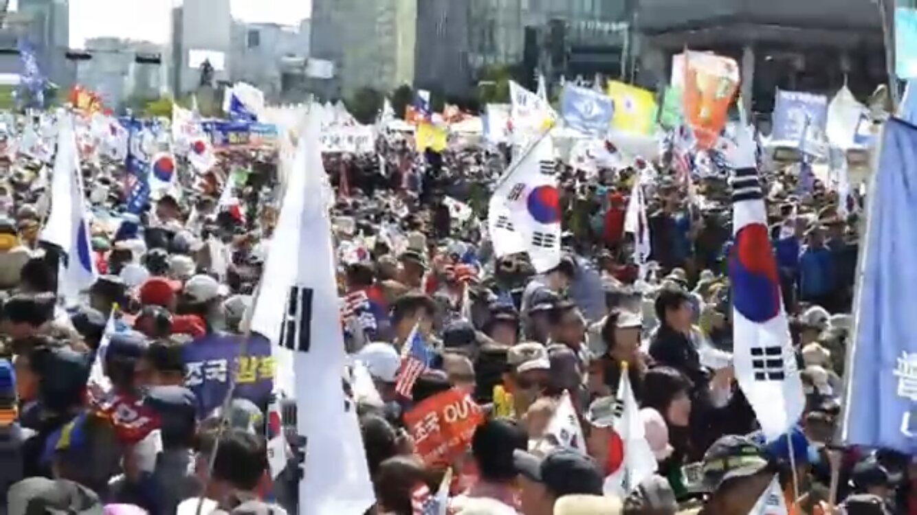 「ハングルの日」保守団体、光化門で「祖国糾弾」の大規模な集会