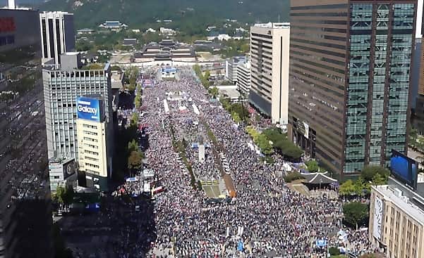 ハングルの日の9日、ソウル光化門広場一帯で祖国法務部長官の辞任を要求する保守団体の大規模な集会が開かれた。建国の最後の3日間に続く保守陣営の第二の光化門の集会であった。