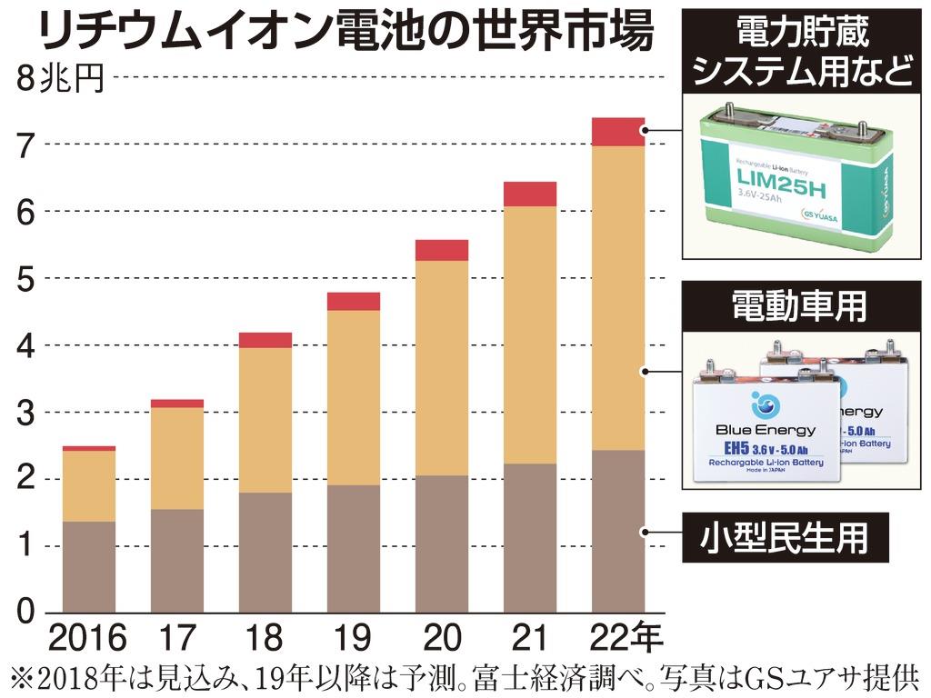 <リチウムイオン電池>世界市場7兆円