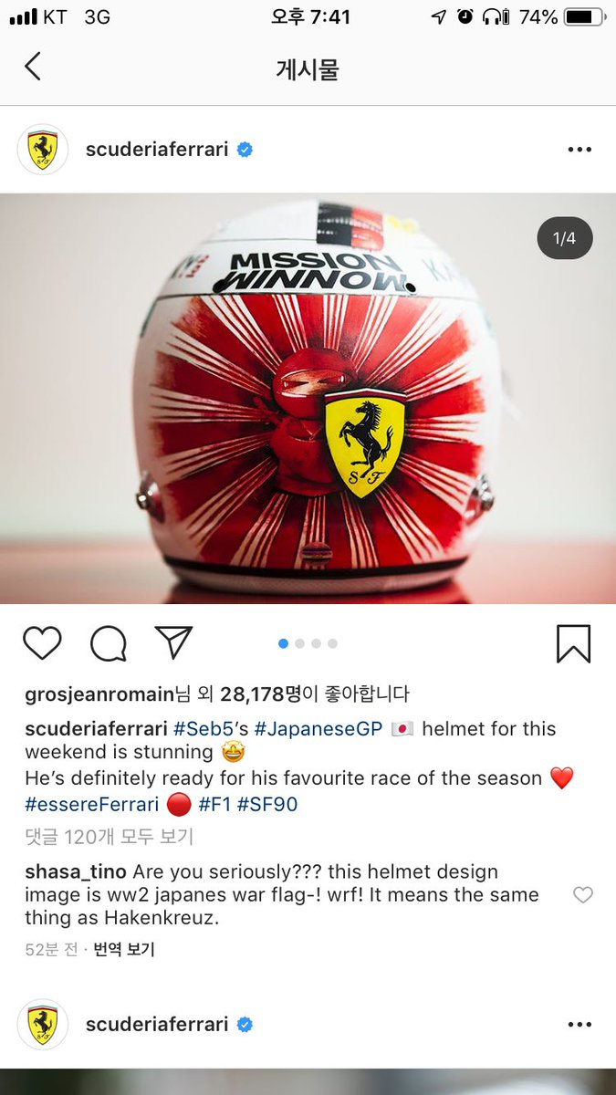 彼は韓国人からの非難を無視して尊敬する日本人メカニックの憧れから旭日旗ヘルメットを止めないね~🎵