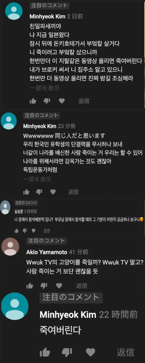 【韓国】Youtuber「WWUK」氏に対する脅迫に関して【独立烈士】