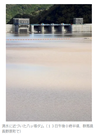 【八ッ場ダム、一気に「満水まで10m」…台風で54m上昇】