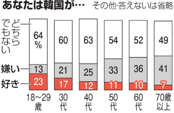 それよりも、韓国が「好きでも嫌いでもない」という“無関心”層が、当の若者に一番多いという結果を、