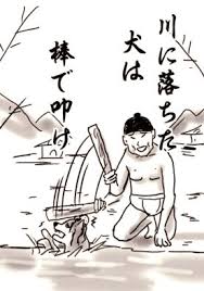 韓国では「川に落ちた犬は、棒で叩け。」 らしいから>>92