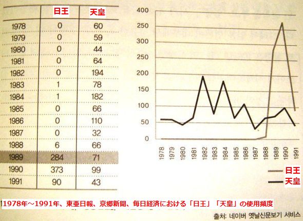 ただ、マスコミは天皇の代わりに日王という表現を使っている。 日本で使う表現をそのまま呼んで、価値判断なしに一般名詞として使うのが正しいという意見もあるが、戦犯国家だった日本の王を結果的に高めるのは正しくないとし、政府の公式呼称も変わるべきだという主張もある。