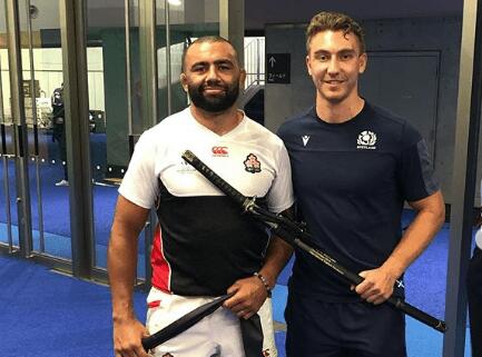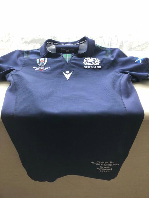 予選敗退に涙したスコットランドのレジェンド主将のレイドローが日本代表のSH流大にスコットランド伝統のアザミのジャージをメッセージを込めてプレゼントしました
