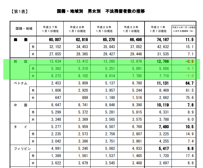 韓国人は、不法滞在者数、Top、第1位、首位だよ!!