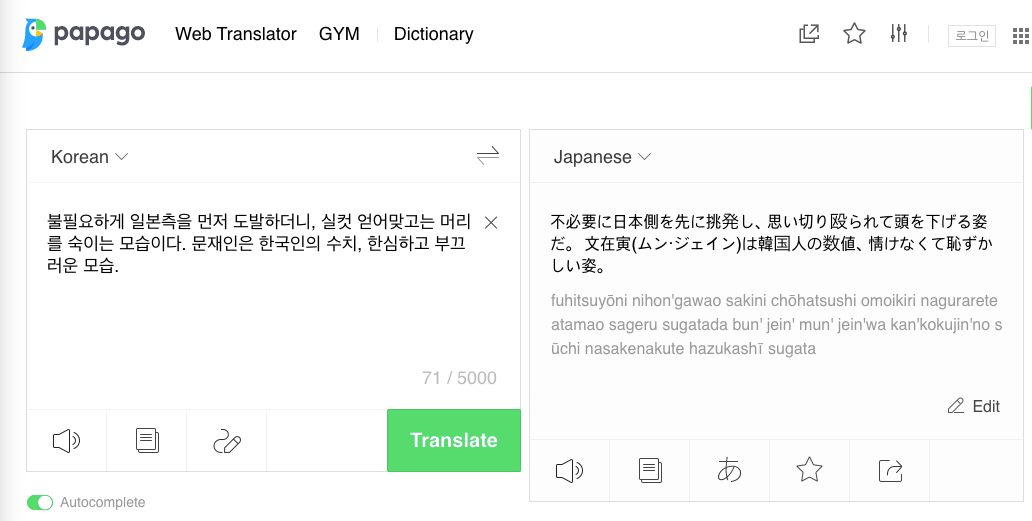 正しい朝鮮語を書けば、Google翻訳でもかなりの翻訳精度が出る。