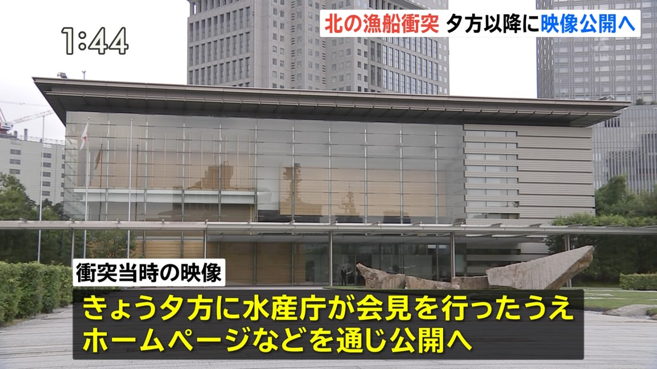 北朝鮮漁船衝突 夕方以降に映像公開へ